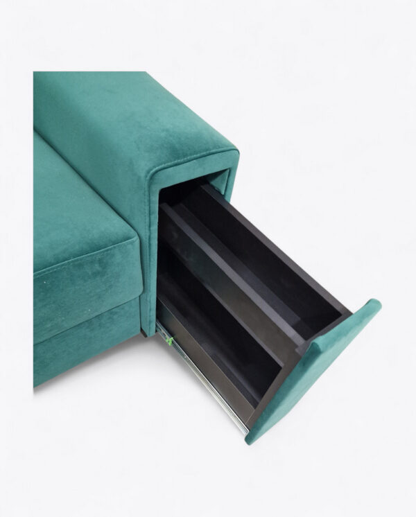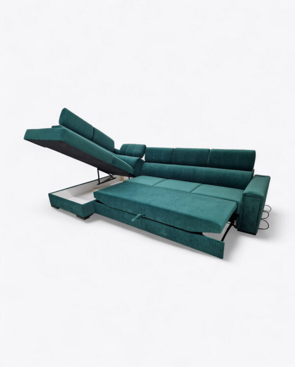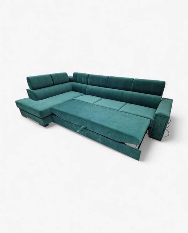- funkcja spania na sprężynie, obita tkaniną z narożnika