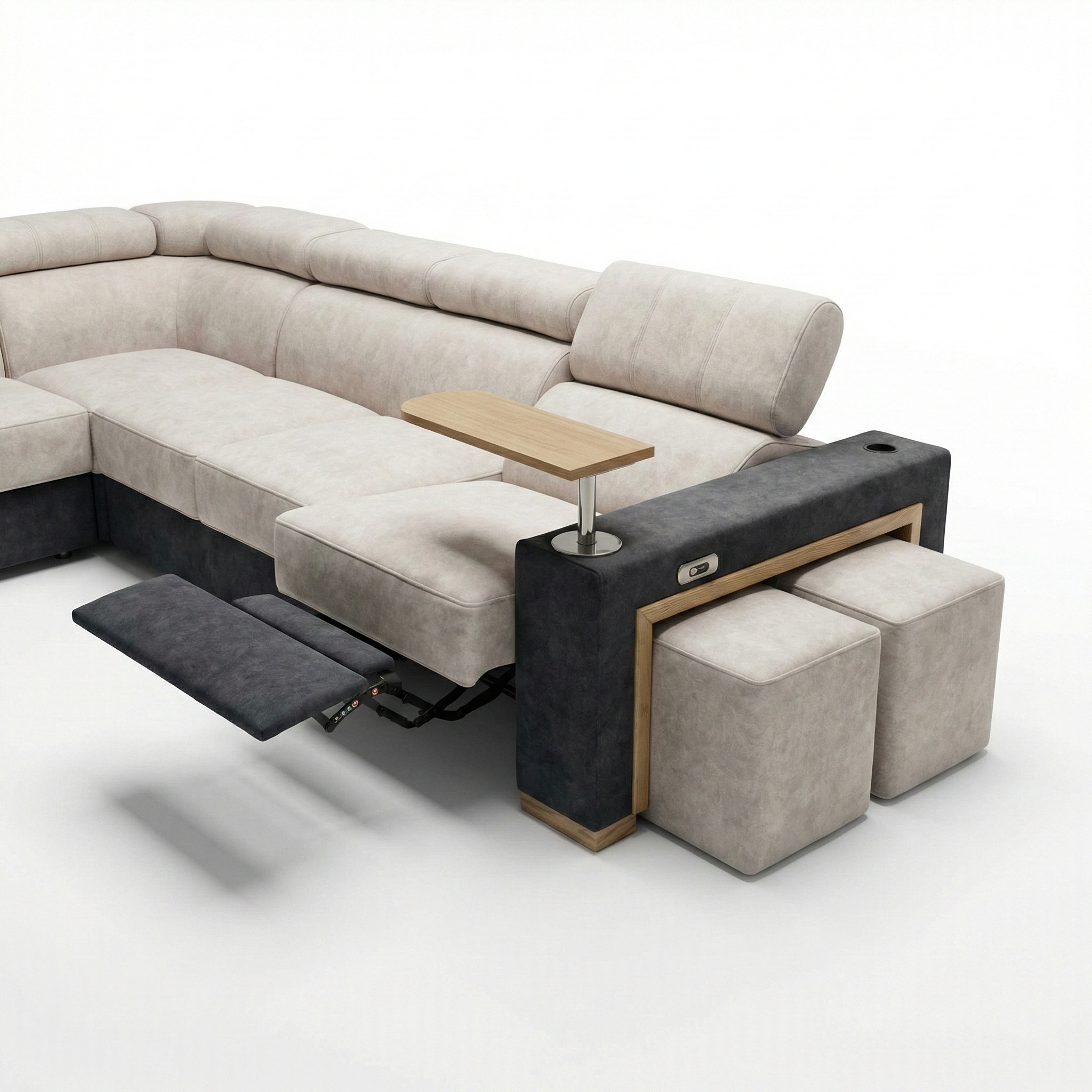 Dodatkowym udogodnieniem jest obrotowa półka na laptop, która pozwala na komfortową pracę, korzystanie z multimediów lub relaks bez konieczności zmiany miejsca.