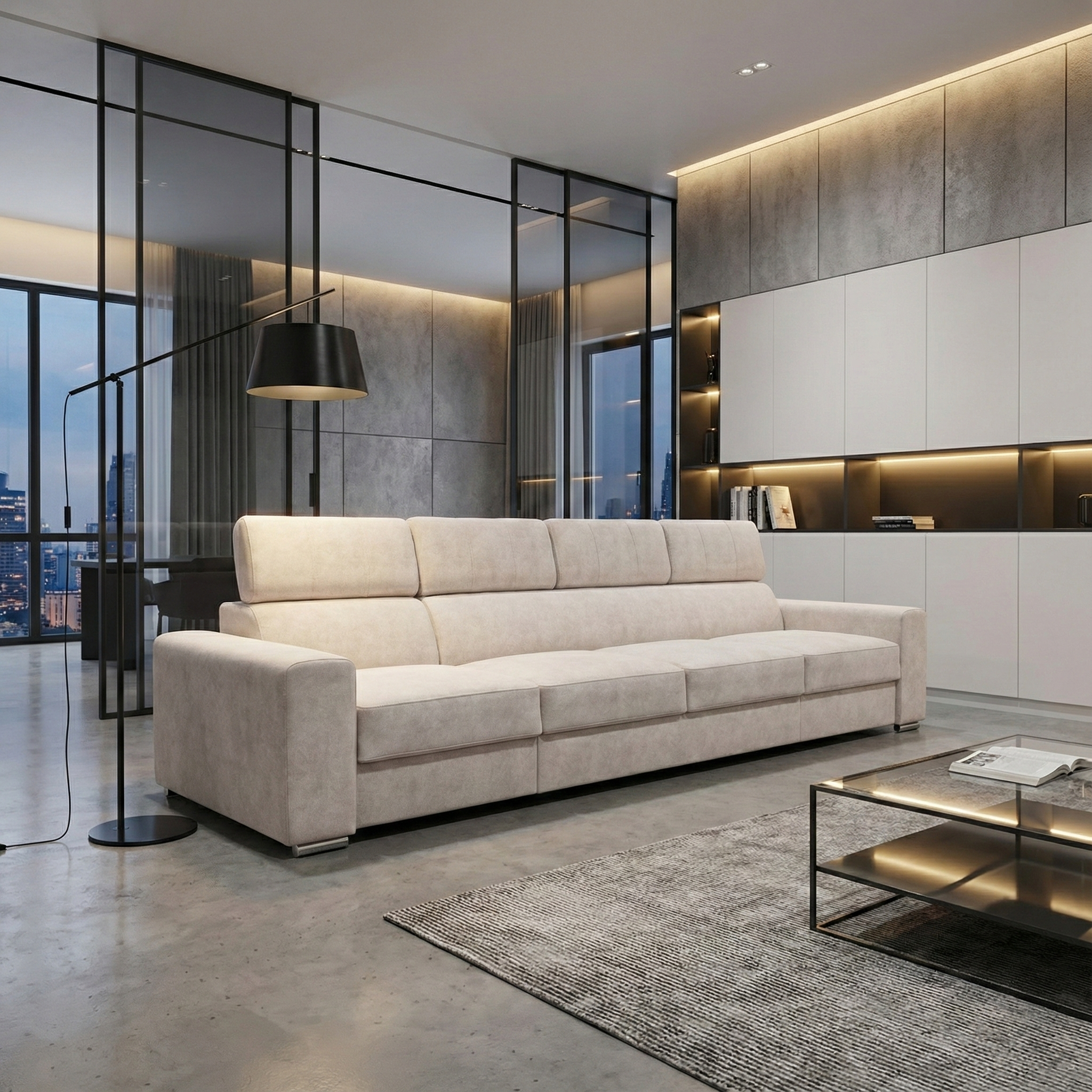 Sofa świetnie sprawdzi się w salonie, przestrzeniach open space oraz wnętrzach urządzonych w stylu nowoczesnym, loftowym i minimalistycznym. To model ceniony przez klientów za wysoką trwałość, wygodę użytkowania i ponadczasowy wygląd, dzięki czemu pozostaje jednym z naszych bestsellerów.