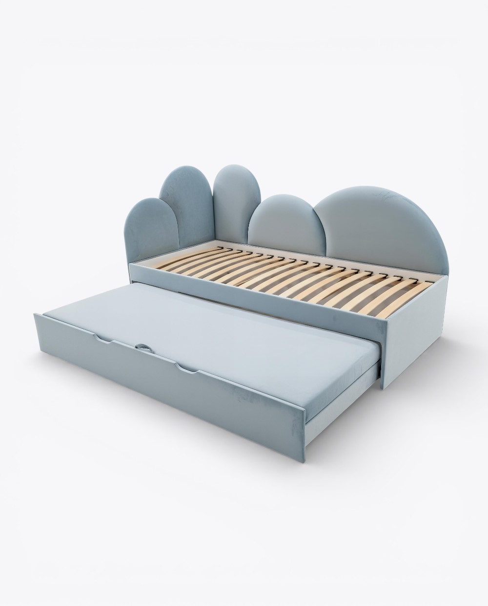 Łóżko zostało wyposażone w wysuwaną, dodatkową powierzchnię spania oraz praktyczny pojemnik, co czyni je świetnym rozwiązaniem na nocowanie koleżanek, kolegów lub rodzeństwa. To połączenie estetyki z funkcjonalnością pozwala lepiej zagospodarować przestrzeń w pokoju dziecka.