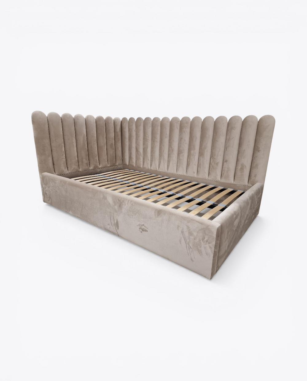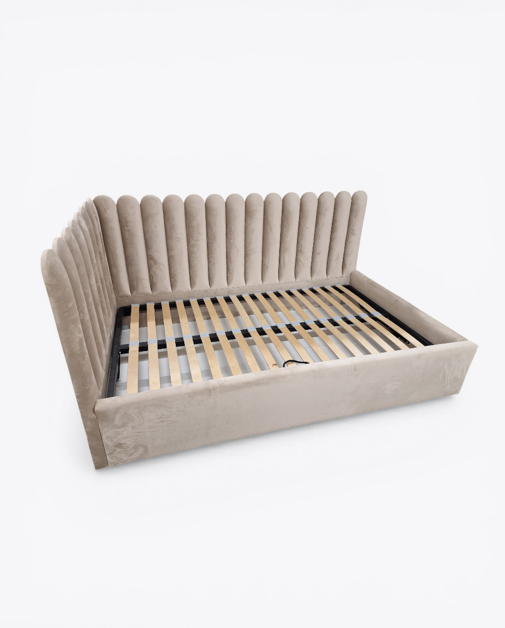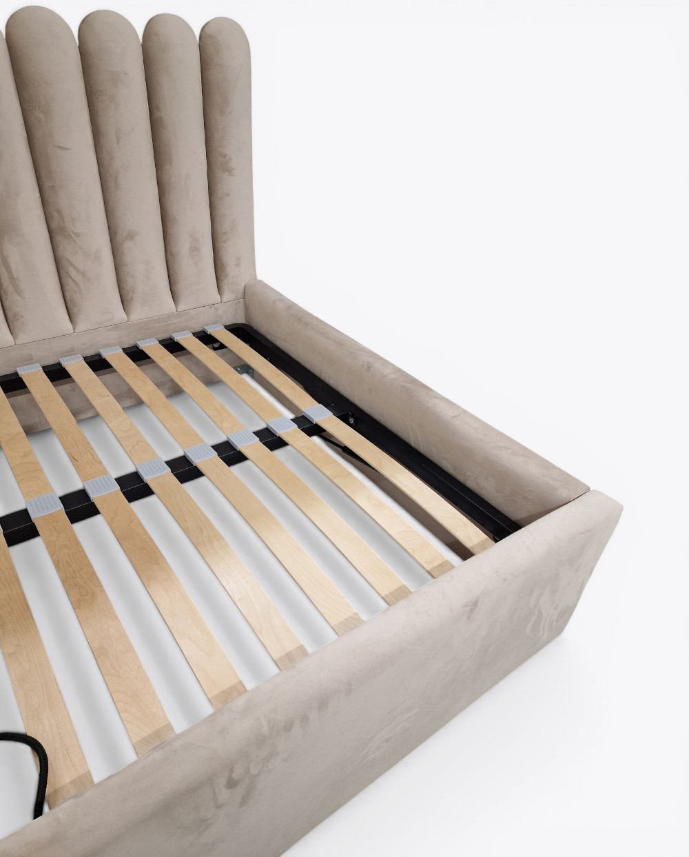 Model ŁUKI wyposażony jest w praktyczny pojemnik na pościel, otwierany za pomocą podnośników gazowych. Mechanizm działa lekko i bezpiecznie, ułatwiając codzienne korzystanie ze schowka. To idealne miejsce na pościel, koce, sezonowe ubrania lub inne rzeczy, które warto mieć pod ręką.