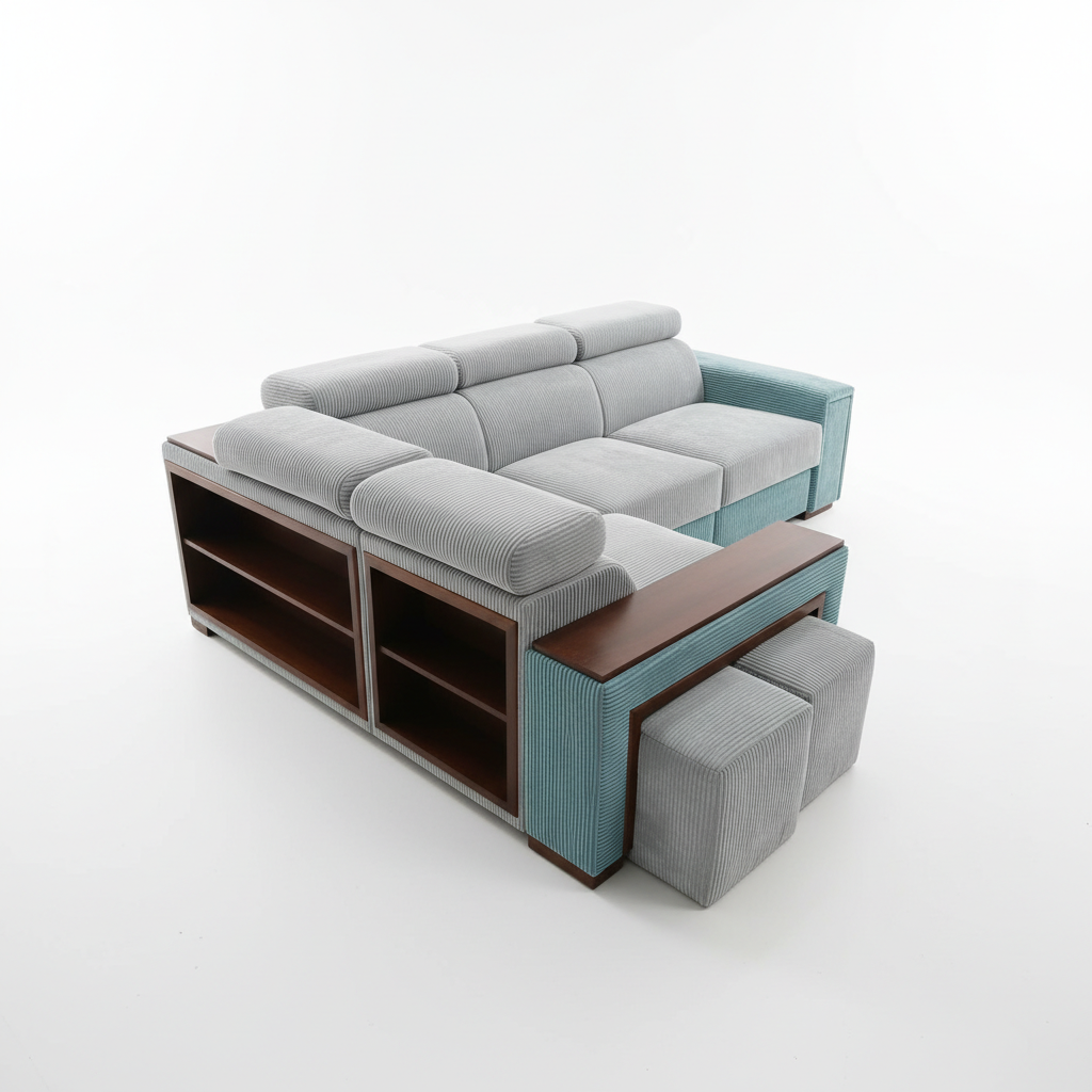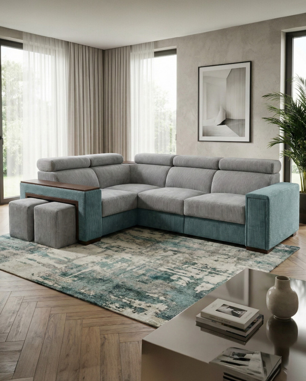 W narożniku zostały zastosowane nowoczesne i praktyczne rozwiązania: