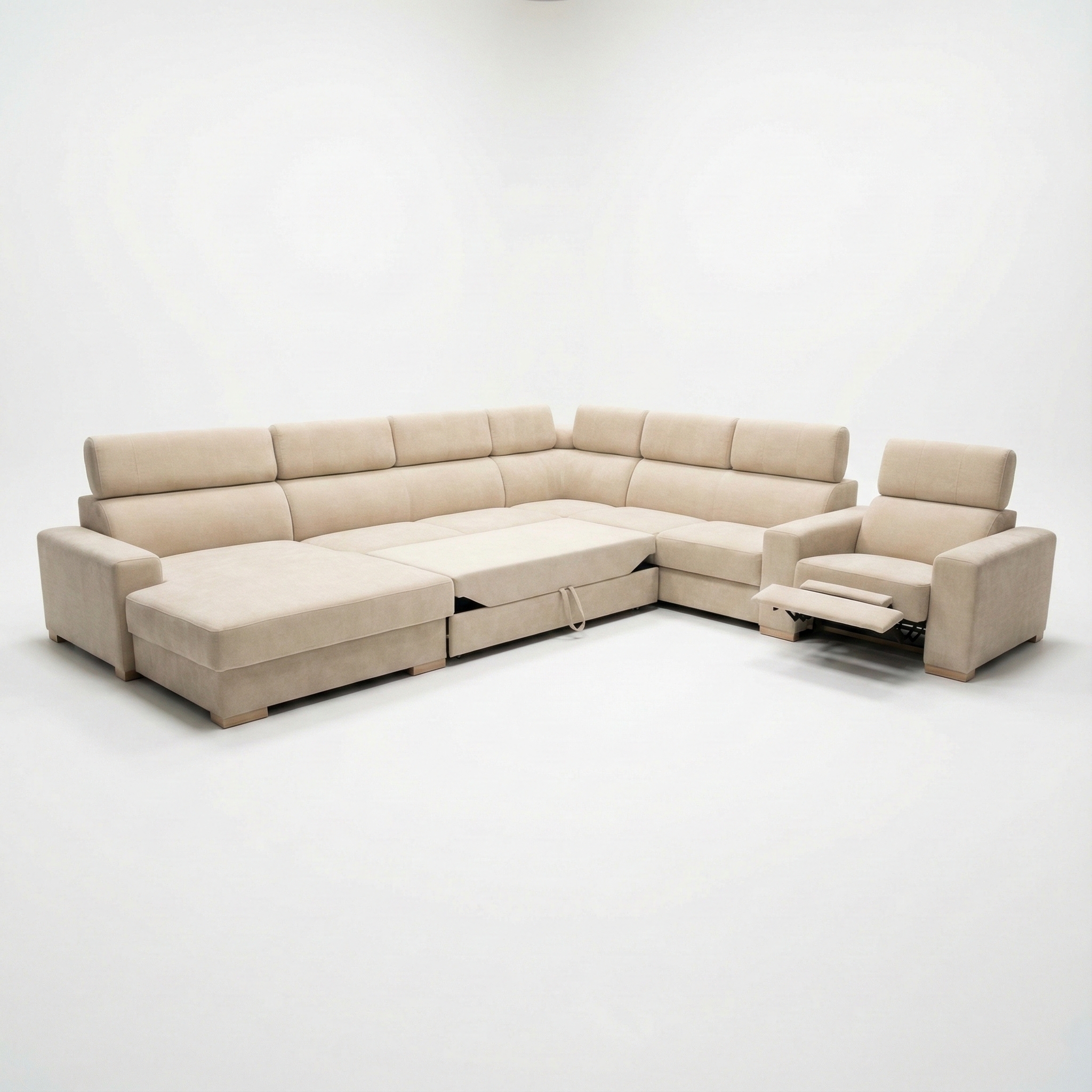 Szukasz dużego, wygodnego i funkcjonalnego narożnika do salonu? Nasz narożnik o wymiarach 185x380x315 to połączenie nowoczesnego designu, komfortu i praktycznych rozwiązań. Dzięki funkcji spania o powierzchni 125×315 cm z łatwością zamienisz go w wygodne łóżko dla gości lub codzienne użytkowanie.