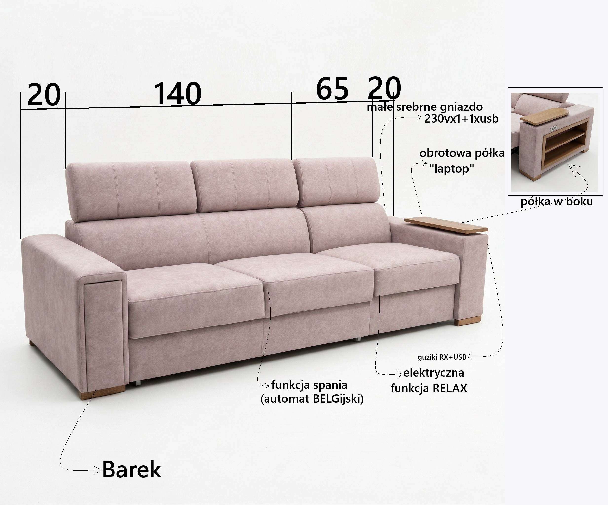 W sofie zostały zastosowane nowoczesne i praktyczne rozwiązania: