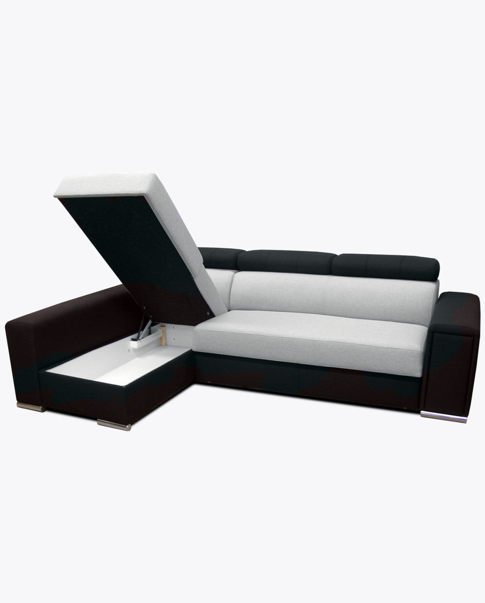 W narożniku zostały zastosowane nowoczesne i praktyczne rozwiązania